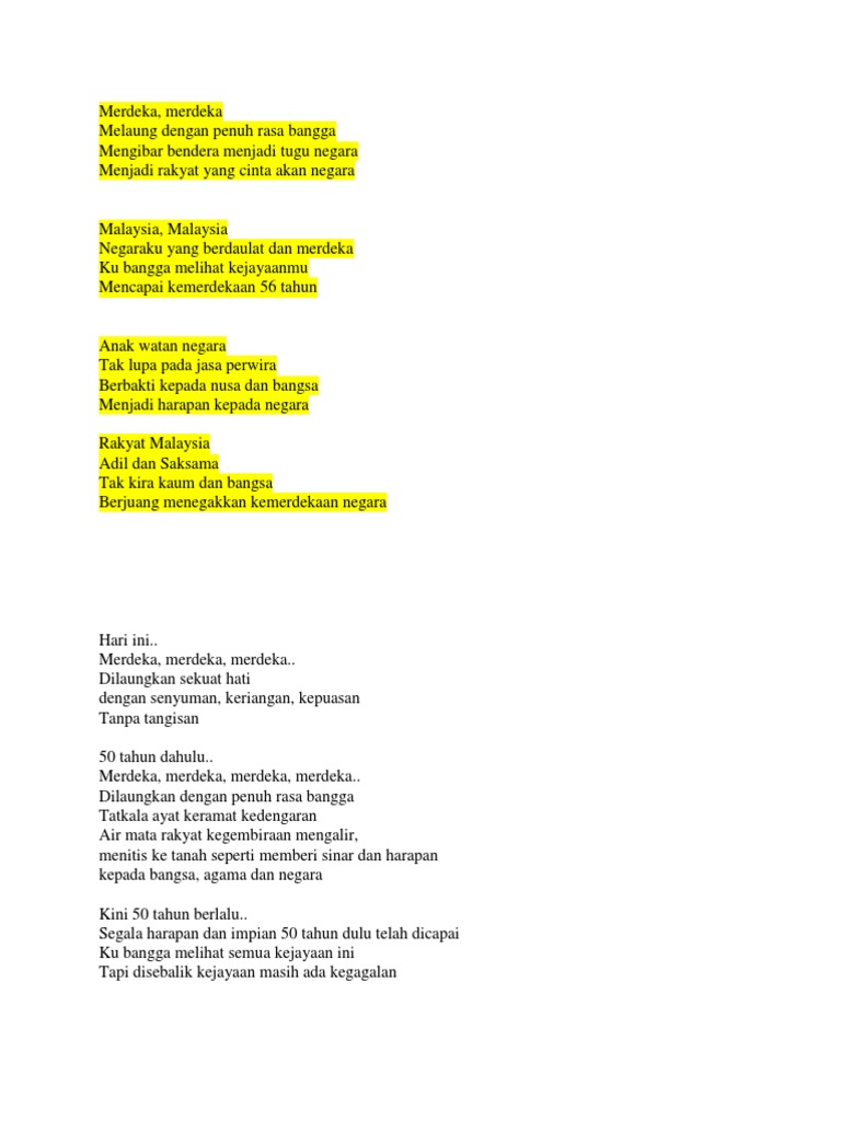 Sajak Negaraku Merdeka Nukilan Ds Zambry