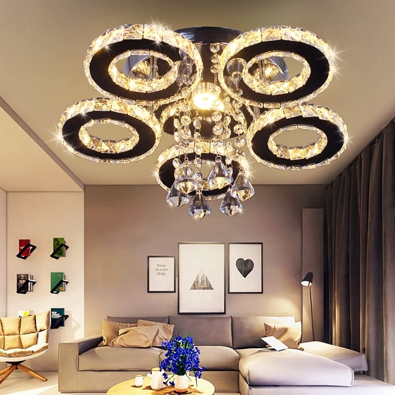 New Version Moden Lampu Hiasan Siling Led Kristal 5 Cincin Deco Ceiling Light Crystal Rings Type Led Ruang Tamu Shopee Malaysia